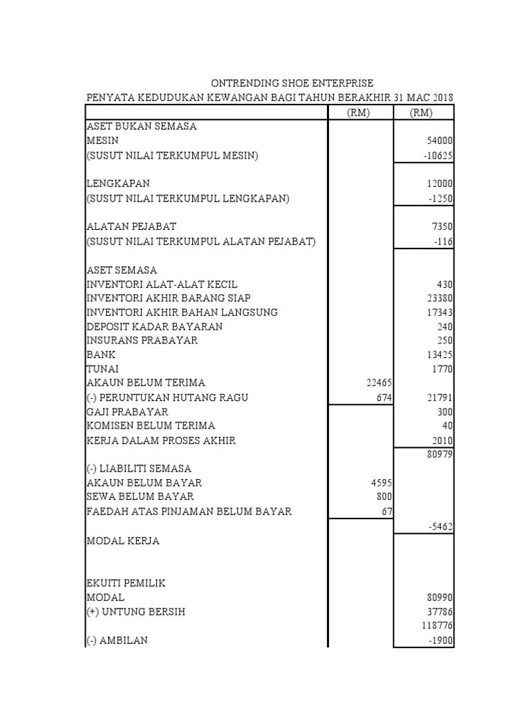 *nama perniagaan* pen yata kedudukan kewangan pada.